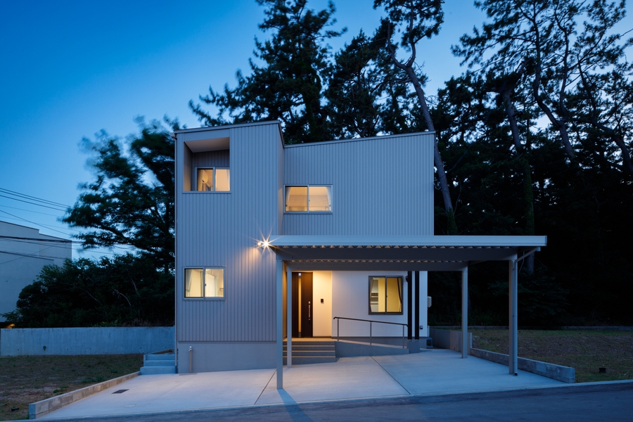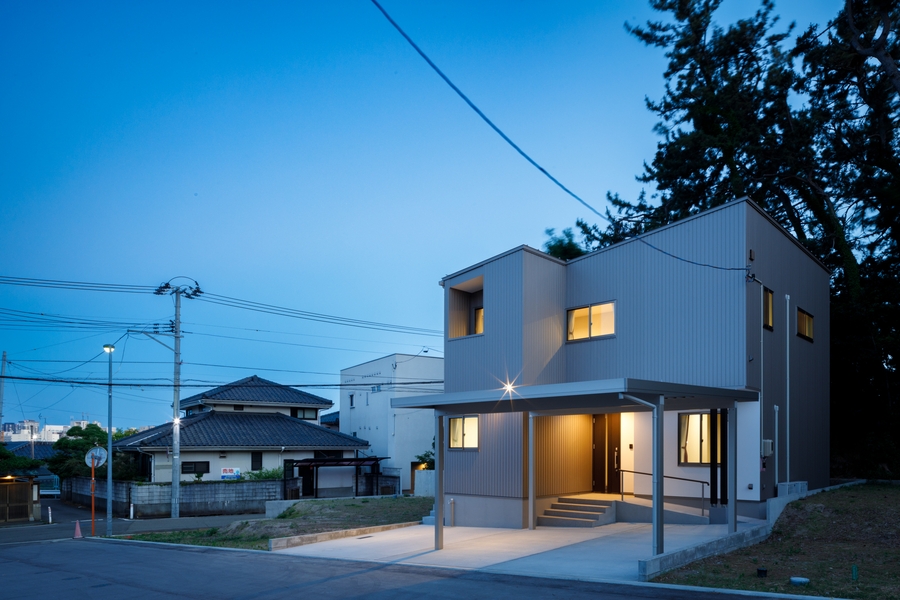 高台に建つ二世帯住宅設計